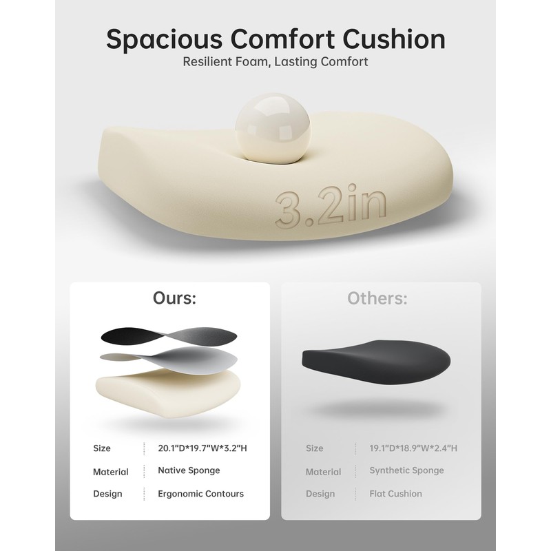 - 【Enhanced Lumbar Support】This office chair features a large and adjustable lumbar support cushion filled with thick sponge to cradle your lower back and help you maintain a comfortable posture for long hours of work. It also has an S-shaped ergonomic backrest that aligns with your spine and reduces pressure and muscle fatigue.
