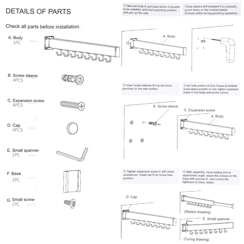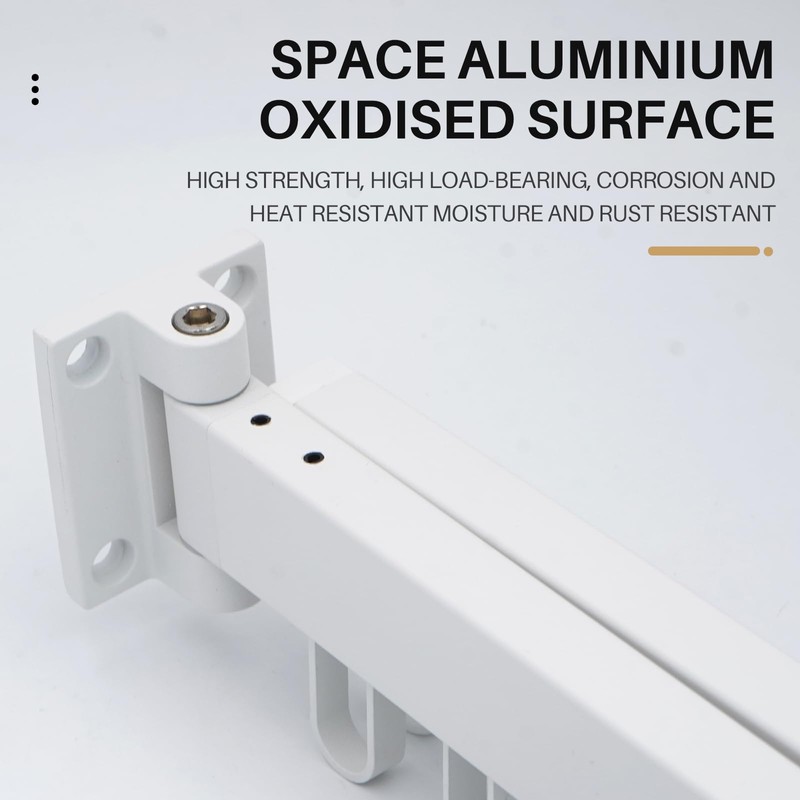 - Material: The wall mounted clothes airer is made of full aluminium material, which is not easy to rust. Drilling installation method, strong load capacity, more stable. Unfolded length: 90 cm