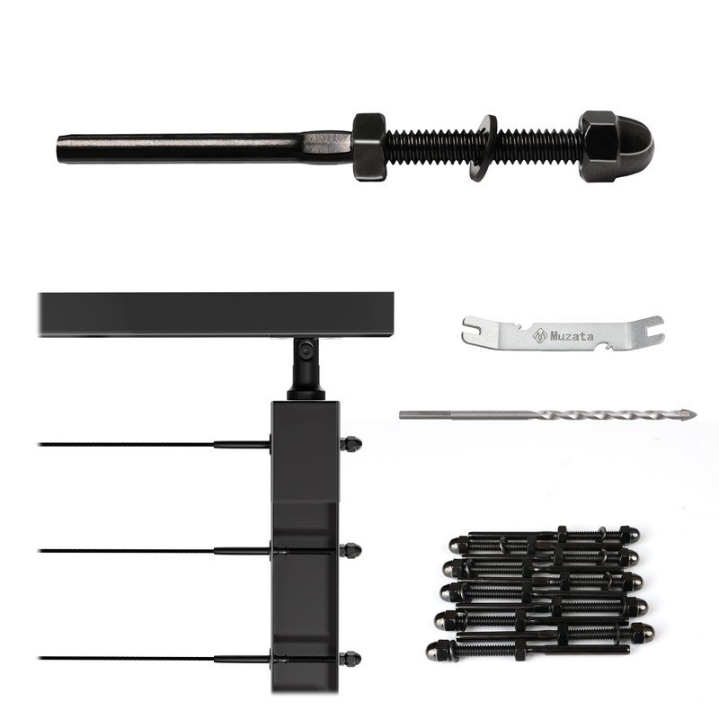 Muzata 10Pack Black Cable Railing Kit Hand Swage Threaded Stud Tensioner for 1/8" Cable for 2x2 Metal Post Deck Stair Cable Railing Hardware Terminal T316 Stainless Steel Marine Grade CR23