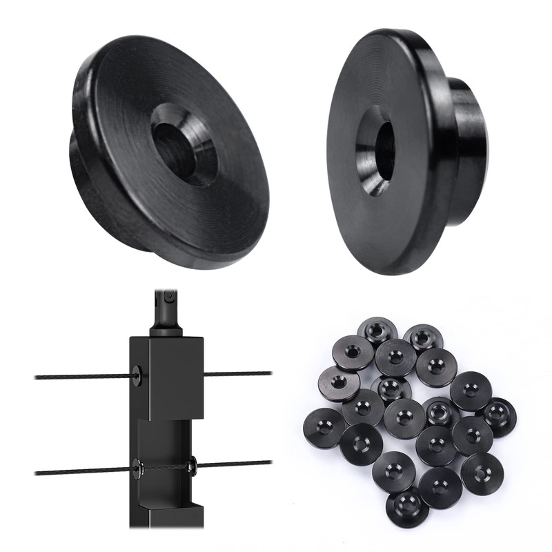 - Clean Finished Look: Patent designed to cover the holes on level intermediate, creating a clean look and preventing cable abrasion. They bear payload over 200lbs and greatly save your efforts and costs. Adding these protective sleeves will also make it easier to stretch cable through posts and also help to maintain proper cable tension