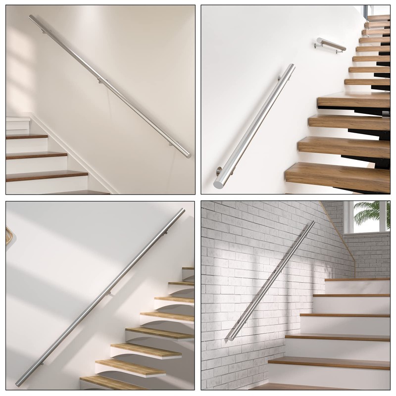- Weather protection - Made of premium T304 stainless steel, this handrail is rust-resistant and durable, ideal for indoor and outdoor use. It's suitable for any angle stairs and landings and can be mounted on wood, concrete, brick, or stone walls. Please note that T304 is not recommended for projects within 10 miles of the coast or saltwater