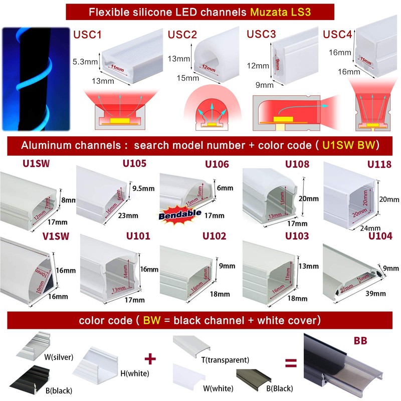 - The wider LED aluminum channel is 12.5mm perfected for 3528, 5050 & 5630 and Philips Hue Lightstrip 1st Generation waterproof LED strips, Please search for "MUZATA U102 "to purchase the led track housing for Philips Hue Plus. Or search B0989L9GM9 to purchase LED neon skirting Board
