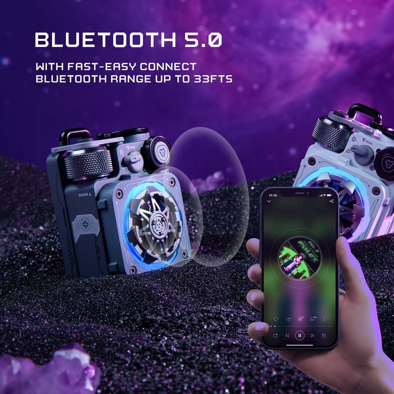 - Luz LED RGB: luz LED RGB con tema Cyberpunk. Según los graves aumentados muestran diferentes temas que cambian de color que pulsan y brillan al ritmo de tu música. Las luces degradadas y los altavoces Bluetooth son siempre la buena fiesta de socios para hacer atmosférico.