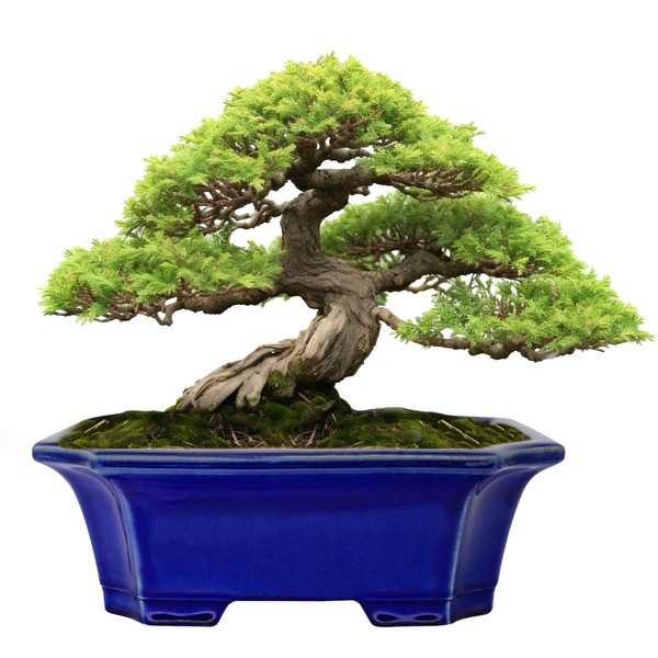 MUZHI Blue Bonsai Plant Pot 10” with Drip Saucer, Classic Glazed Ceramic Planter Container for Tree, Cactus, Succulent
