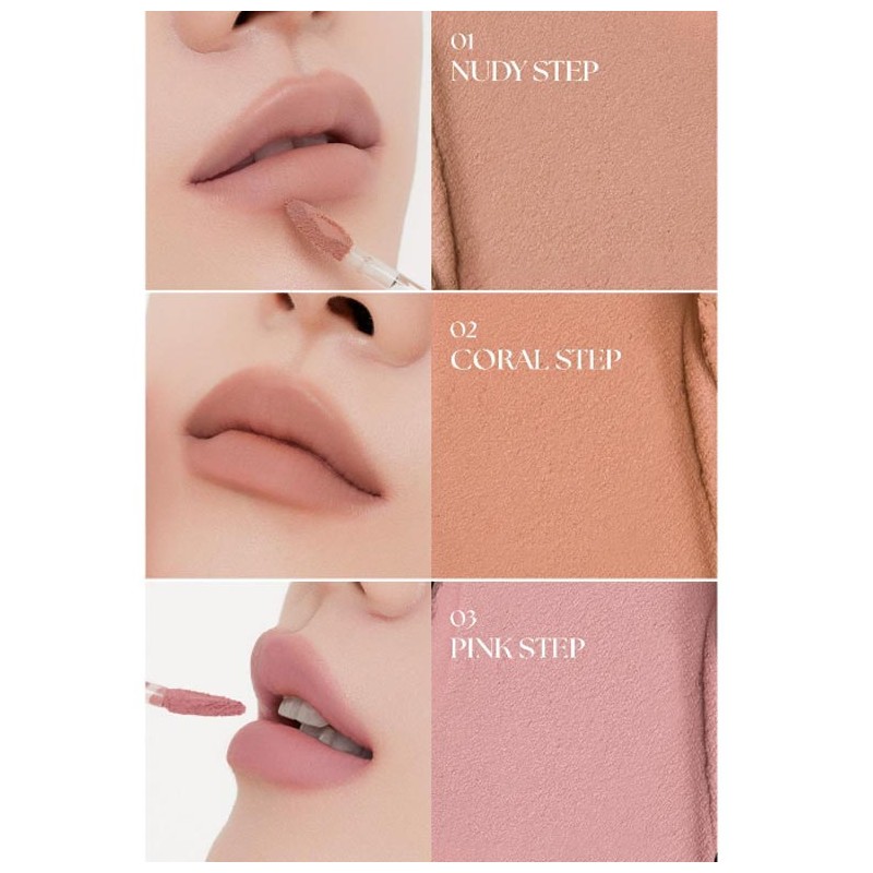 01 Nudy Step, 02 Coral Step, 03 Pink Step, 04 Faded Fig, 05 Hush Rose, 06 Coldish Mauve