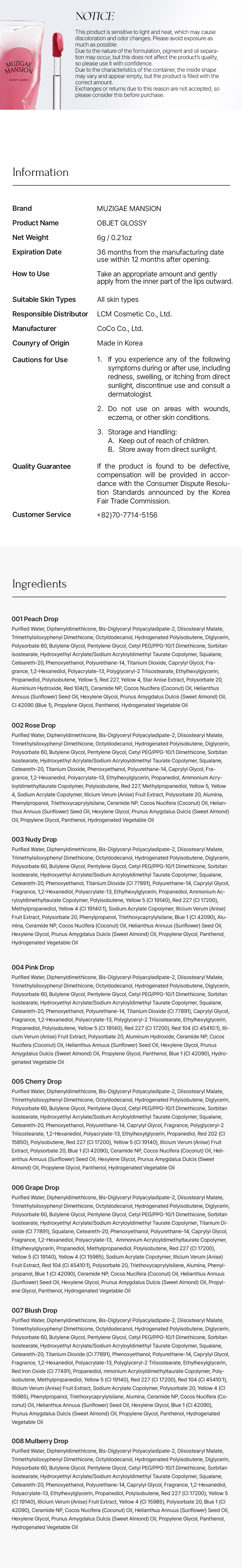 • Ingredients: [No. 1] Refined water, diphenyldimethicone, bis-diglyceryl polyacylidipate-2, diisostearylmalate, trimethylsiloxylphenyldimethicone, octyldodecanol, hydrogenated polyisobutene, diglycerin, polysolbate60, butylene glycol, pentylene glycol, cetylene glycol, cetylpig/pig-10/1 dimethicone, solvitanoacrylate/sodium acryloyldimethyltaurate copolymer, squalane, ceteares-20, phenoxyethanol, polyurethane-14, titanium dioxide, capryl glycol, fragrance, 1,2-hexanediol, polyacrylate-13, polyglyceryl-2 triisostearate, propanediol, polyisobutene, polyisobutene, No.5 red, No.227, No.4 yellow, stianis extract, polysolbate20, aluminum hydroxide, sunflower seed oil, hexylene glycol, sweet almond oil, blue No.1, propylene glycol, panthenolatechol, hydrozenate phytonate oil, diphenyldimethicone, bis-diglyceryl diacrylate, diamethylsiloxaneyldimethicone, octyldeicanol, hydrozenated polyacylidymethanol, hydrozenated polyacetate, polysorbate, polysorbate, polysolvayglycerinT60, butylene glycol, pentylene glycol, cetylpyg/pig-10/1 dimethicone, sorbitan isostearate, hydroxyethylacrylate/sodium acryloyl dimethyltaurate copolymer, squalane, ceteares-20, titanium dioxide, phenoxyethanol, polyurethane-14, capryl glycol, flavoring, 1,2-hexanediol, polyacrylate-13, ethylhexylglycerin, propanediol, ammonium acrylate copolymer, polyisobutene, red 227, methylpropanediol, yellow 5, yellow 4, sodium acrylate copolymer, stianis extract, polysolbate 20, alumina, phenylpropanol, triethoxycaprylsilane, ceramideenp, coconut palm oil, sweet alumina oil, propylene glycol, panthenol, hydrozenated vegetable oil [No.3] purified water, diphenyldimethicone, bis-diglyceryl polyacyl diethylamate-2, diisosteylate, trimethylxyphenyldimethanol, hydrozenated polyisopolyacidylate, diethylphenyldiol, dizenated polyisol, dizenated polyisobutene, diethylene glycol, cetylglyc/pig-10/1 dimethicone, sorbitanate, sorbitan isosteate, hydroxyethylacrylate/sodium acrylate, polymethyltetide copolymer, Squalane, ceteares-20, phenoxyethanol, titanium dioxide, polyurethane-14, caprylglycol, fragrance, 1,2-hexanediol, polyacrylate-13, ethylhexylglycerin, propanediol, ammonium acrylate copolymer, polyisobutene, yellow 5, red 227, methylpropanediol, yellow 4, sodium acrylate copolymer, stani's extract, polysolbate 20, phenylpropanol, triethoxycaprylsilane, blue 1, alumina, ceramideenpi, coconut palm oil, sweet almond oil, propylene glycol, panthenol, hydrogenated vegetable oil [No. 4] tablet water, diphenyldimethicone, bis-diglyceryl polyacyl diacylate-2, diisostearyl maleate, trimethylsiloxysophenyldimethiol, hydrogenated polyisobutene, diglycenyl diethylated polyisobutene, diglycerin, polysolve60, butylene glycol, pentylene glycerin/piglycole, pentylenzyme-10/1dimethicone, sorbitanosterate, hydroxyethyl methylpyrate/sodium acrylate, squalane-20, phenoxyethanol, polyurethane-14, titanium dioxide, capryl glycol, flavoring 1,2-hexanediol, polyacrylate-13, polyacrylate-13, polyacrylate-13, polyacrylate-13, polyacrylate-13, polyacrylate-13, polyacrylate-13, polyacrylate-13-diol, polyacrylate-13, polyacrylate-13, diethyldimethylate, hydroxyethylate/sodium acrylate, squalane, hydroxyethylate/sodium acrylate, squalane, squalane, phenoxyethanol, polyethyleneethanol, polyethanol, polyethane, polyethanol, polyurethane-14, titanium dioxides, capryloyl, capryllyllyl, 1,2, 1,2-hexylglyl, fragranceil, 1,2-hexyl, 1, polyacrylate-13, polyacrylate, 1, polyacrylate-13, polyacrylate, 1, polyacrylate-13, polyacrylate-13, polyacrylate-13, polyacrylate-13, polyacryglyceryl-2 triisostearate, ethylhexylglycerin, propanediol, polyisobutene, yellow 5, red 227, red 104-1, staanis extract, polysolbate 20, aluminum hydroxide, ceramide np, coconut palm oil, sunflower seed oil, hexylene glycol, sweet almond oil, propylene glycol, panthenol, blue No. 1, hydrogenated vegetable oil hydrogenated vegetable oil [No. 5] purified water, diphenyldimethicone, bis-diglyceryl polyacyladipate-2, diisostearylmalate, trimethyloxyphenyldimethicone, octyldodecanol, hydrogenated polyisobutene, diglycerin, polyglycerin, polyglycate 60, butylene glycol, cetylene glycol, cetylpyg/pig-10/1 dimethicone, sorbitanisostearate, hydroxyethylacrylate/sodiumacryloyldimethyltaurate copolymer, squalan, ceteares-20, phenoxyethanol, polyurethane-14, capryllyl glycol, fragrance, polyglyceryl-2isosterate, 1,2-hexane diol, polyacrylate-13 diol, propanediol, red no.227, yellow no.5 staanis extract, polysolate20, blue no.1, ceramideen oil, sunflower, sunflower, hydroxyethylacrylate, phenoxyethanol, polyacrylate-13, ethylhexane diol, propanediol, red no.1, propanediol, red no.1, propanediol, red no.2022, red no.227, red no. 227, red no. 227, staannis extract, polysolbate, no.20, blue no. 20, ceramideenpi oil, coconut palm oil, sunflower, coconut palm oil, sunflower, sunflower, phenoxyethylhexylhexylcerin, propanediol, propane, propane, propane diol, red, red no.202, no.202, no.202, no. 227, red no. 227, red. 227, red. 221, red. 227, staethaneis extract, red. 5, sta., red. 8, staisol., red. 5, staisol., polyCoyl, hexylene glycol, sweet almond oil, propylene glycol, panthenol, hydrogenated vegetable oil [No. 6] Purified water, diphenyldimethicone, bis-diglyceryl polyacylacyladipate-2, diisostearylmalate, trimethylsiloxylphenyldimethicone-2, octyldodecanol, hydrogenated polyisobutene, diglycerin, polysolate60, butylene glycol, cetylene glycol, cetylphage/pig-10/1 dimethicone, sorbitan isostearate, hydroxyethylacrylate/sodium acryloyldimethyltaurate copolymer, titanium dioxide, squalane, ceteares-20, phenoxyethanol, polyurethane-14, caprylglycol, polyacrylate-13, ammonium acrylate copolymer, ethylhexylglycerin, methylpropanediol, polyisobutene, red 227, yellow 5, yellow 4, sodium acrylate copolymer, starianis extract, red 104 arc of polysolate, triethoxycaprylaine, alumina, phenylpropanol, blue 1, coconut oil, sunflower oil, hexylene glycol, sweet almond oil, propylene glycol, panthenol, hydrogenated vegetable oil
