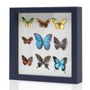 Muzilife 8x8 Shadow Box Picture Frame with Linen Board - Deep Wood & Glass Display Case to Hang Memory Box Baby Sports Memorabilia, Pins, Awards, Medals, Wedding, Tickets and Photos, Navy Blue