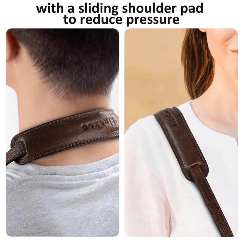 - 【Ergonomic Design】 The thin and lightweight leather camera strap belt is designed with a sliding shoulder padding, can reduce pressure and make hanging comfortable. It will be no any burden for women and men photographers no matter you hang it on your neck or shoulder. The camera strap with 110cm length will be suitable for most persons.