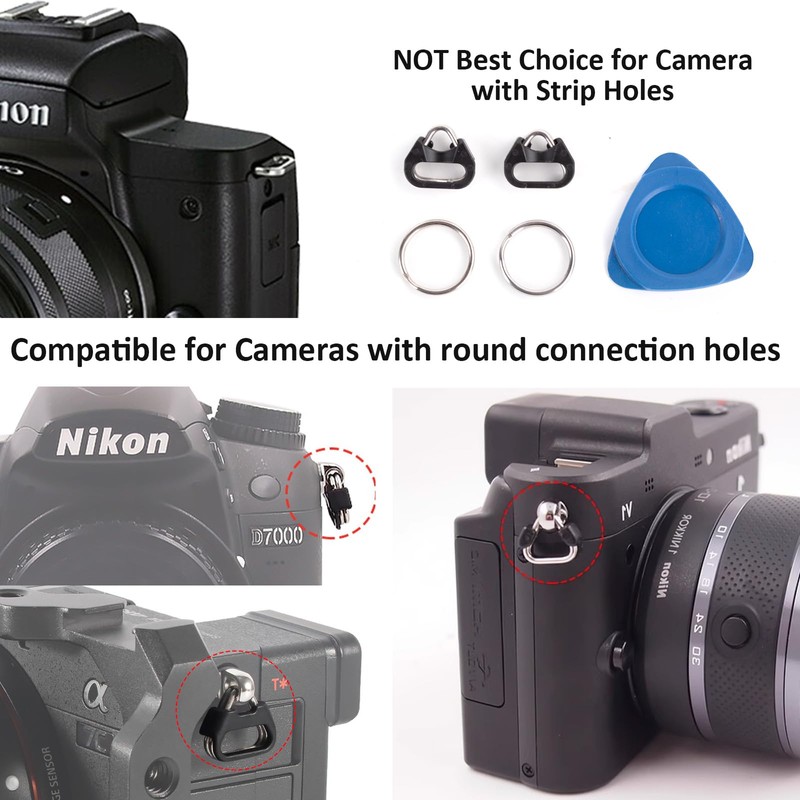 - 【Great Compability 】This camera neck shoulder strap is a great choice for personal and professional use. It is compatible with Sony, Leica, Olympus, Minolta, Panasonic, Fujifilm, Pentax and other brand cameras, best choide for most kind of cameras which are with round connecting holes, NOT best choice for camera with strip holes.