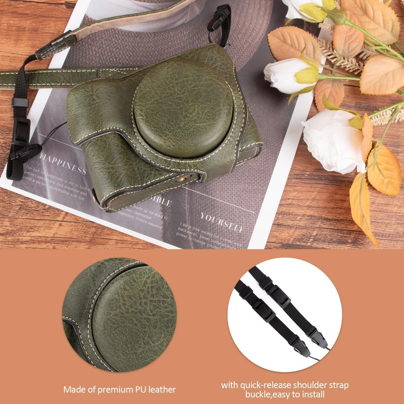 MUZIRI KINOKOO Camera Case Bag for Canon Powershot V1 Vlog Camera, Dermatoglyph PU Leather Protective Case, Detachable Carrying Case with Adjustable Shoulder Strap - Green