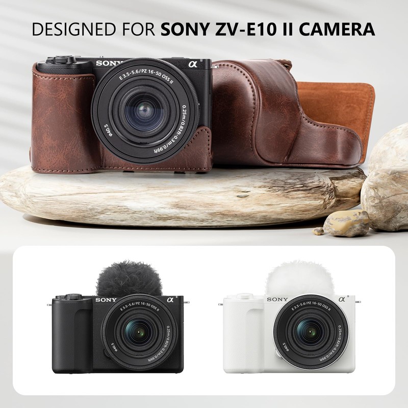 - Material:The ZV-E10 ii case is made of high-quality soft PU leather, reliable and durable, for precision fit and coverage.The soft internal layer of padded fabric keeps for Sony Alpha ZVE10 II/ZV-E10 II Camera LCD screen and lens safe from scratches, along with protecting your camera body.