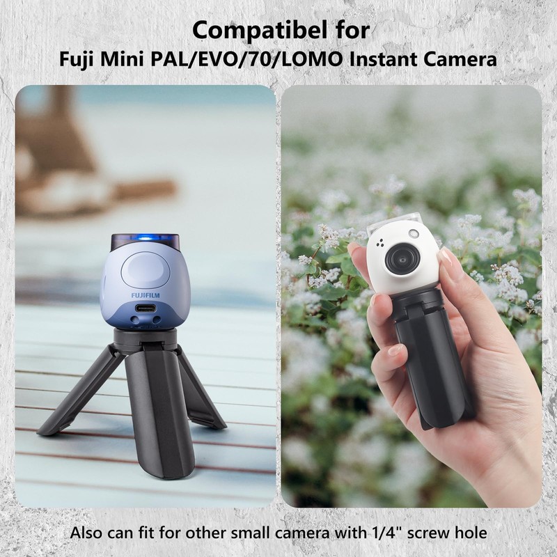 - Compatibility This MIni Pal stand mini tripod is equipped with a 1/4 inch screw, fits for various devices, including Fuji mini Pal, FPAL/EVO/70/LOMO and other small cameras.