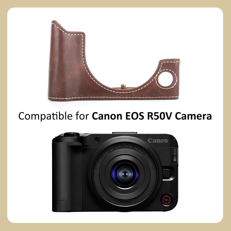 MUZIRI KINOKOO Tasche für die Canon EOS R50 V Kamera, PU-Leder-Halbschutzhülle für die EOS R50 V/R50V Kamera mit Öffnung unten und Handgriff – Retro-Stil