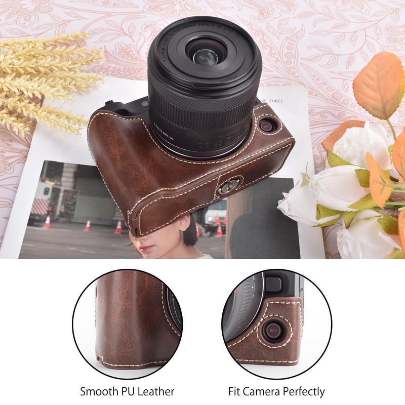 - 【Material】 Diese EOS R50 V/R50V-Kameratasche besteht aus strapazierfähigem, atmungsaktivem PU-Leder mit Vintage-Flair. Sie ist leicht und verfügt über eine weiche Innenseite, die Ihr Kameragehäuse vor Kratzern und Beschädigungen schützt.