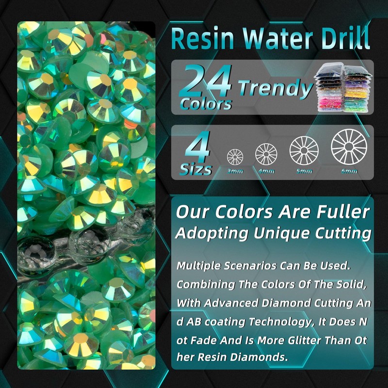 - ✔ BLING AB RHINESTONE - The exceptional material is the secret behind the shimmer of each rhinestone. Our carefully selected resin rhinestones boast a robust AB coating firmly fused onto the surface of each gem. This unique design allows the rhinestones to showcase a breathtaking array of colors under different lighting conditions and refractive angles.