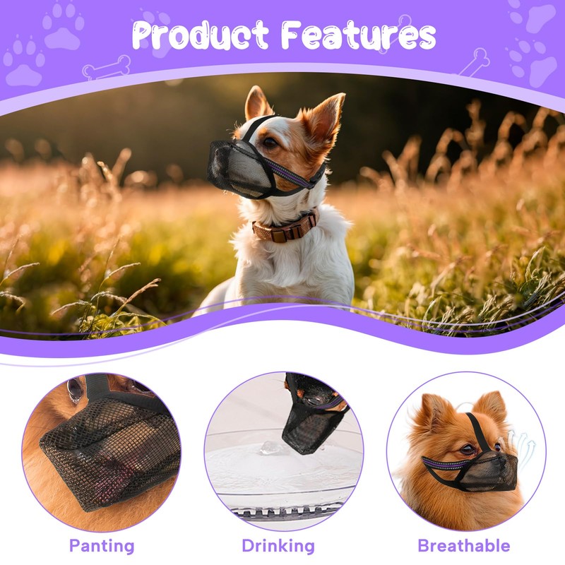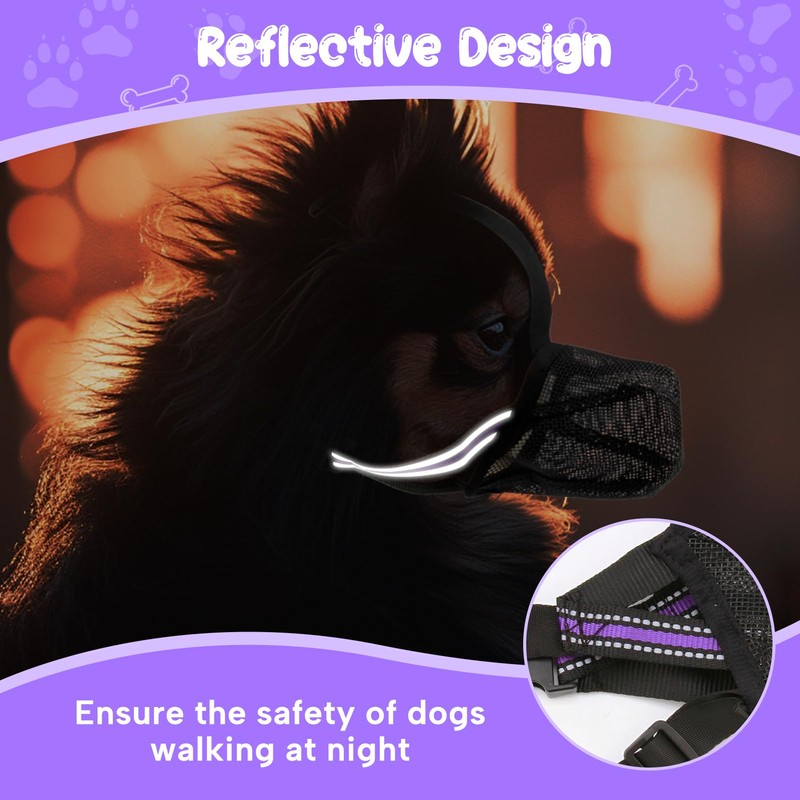 Muzzle for Dogs, Soft Mesh Muzzle, Breathable Mesh for Medium Dogs, Reflective, Adjustable Dog Muzzle to Prevent Eating, Licking, Barking, Allows Panting and Drinking (M)