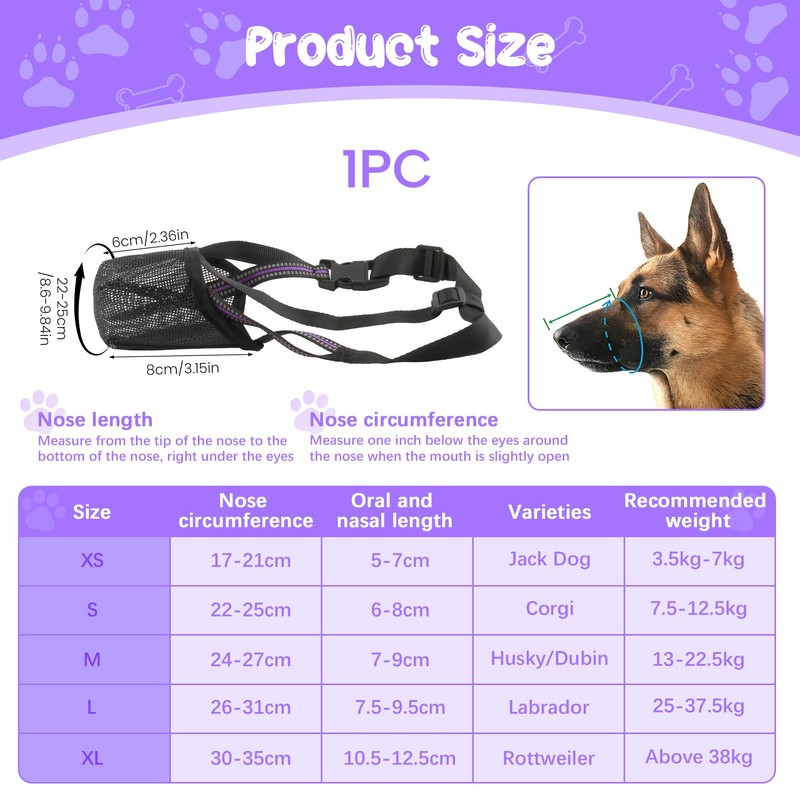 - IDEAL FOR LONGNOSE BREEDS: available in 5 sizes, XSSMLXL, offers different sizes for different dog breeds; provides ample freedom of movement without losing safety; makes panting and drinking easy; ensures complete and reliable coverage of mouth and nose, preventing unnecessary chewing