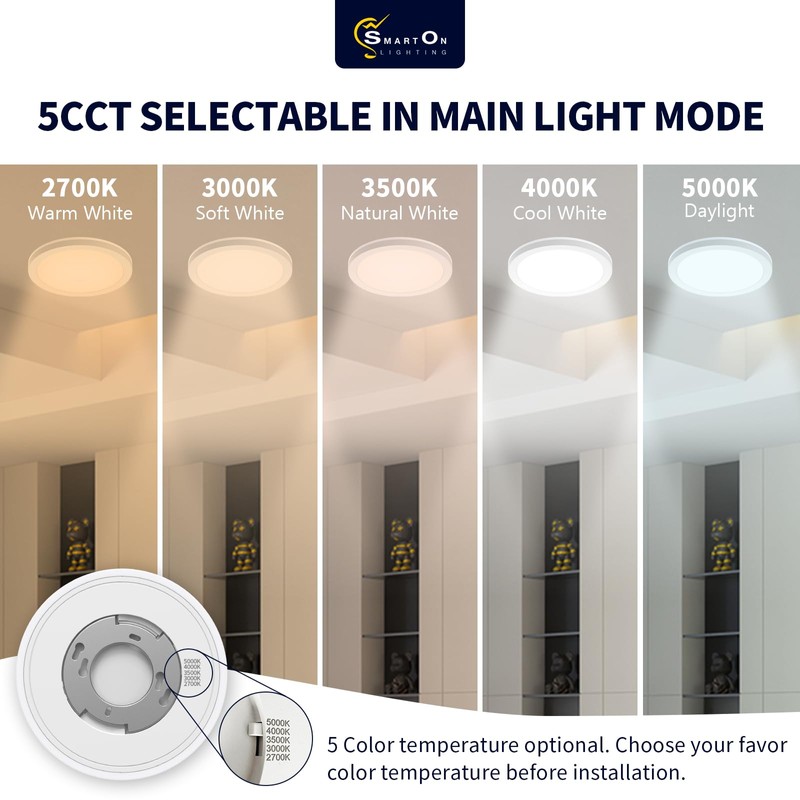 - ✨【5CCT Selectable】This night light ceiling fixture enables you to preset your preferred light color temperature from 2700K/3000K/3500K/4000K/5000K for the main light before installation.