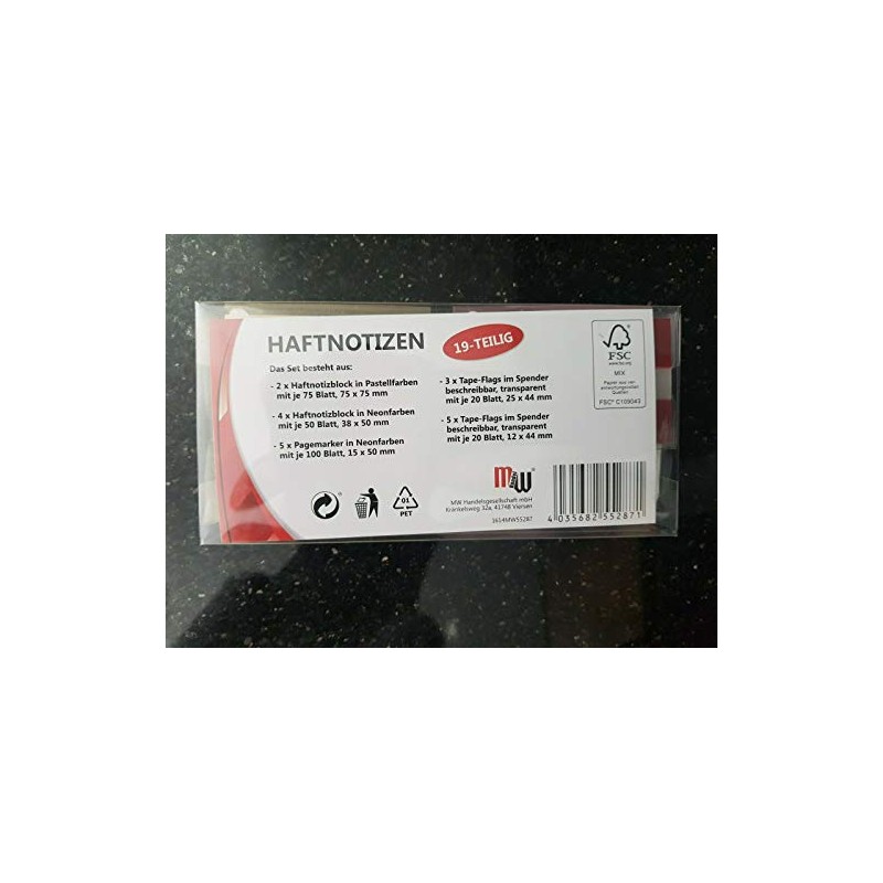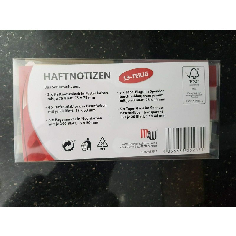 MW Handel Sticky Notes Box FSC Mix Notes, Page Marker Tape Flags (19 Pieces)