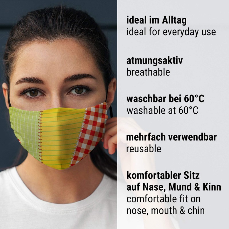 - Quality material: the Maskworld motif masks are made of high-quality materials - dirt-repellent, durable polyester with borderless print on the outside is combined with soft, comfortable cotton on the inside.