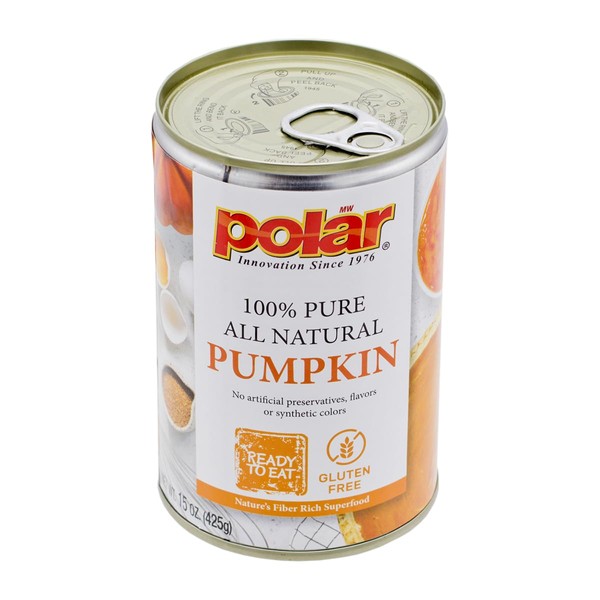 - HEALTHY SHELF STABLE PRODUCT: Polar's All Natural Pumpkin is made of only pumpkin making it naturally gluten free. It is rich in Vitamin A and is a low sodium food.
