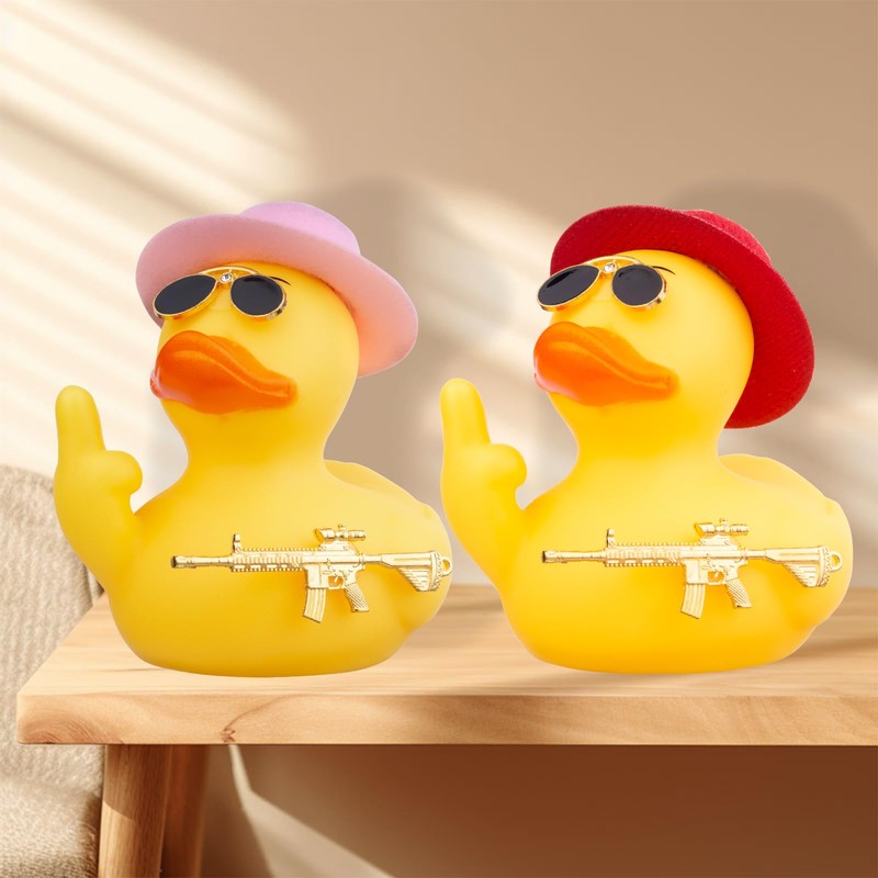 - Spread Joy with Humor The cool cartoon style rubber duck car decoration brings a touch of humor and playfulness to any place. You can share this finger duck toy with your friends, neighbors, family and colleagues. Every time we see it, we have to laugh out loud.