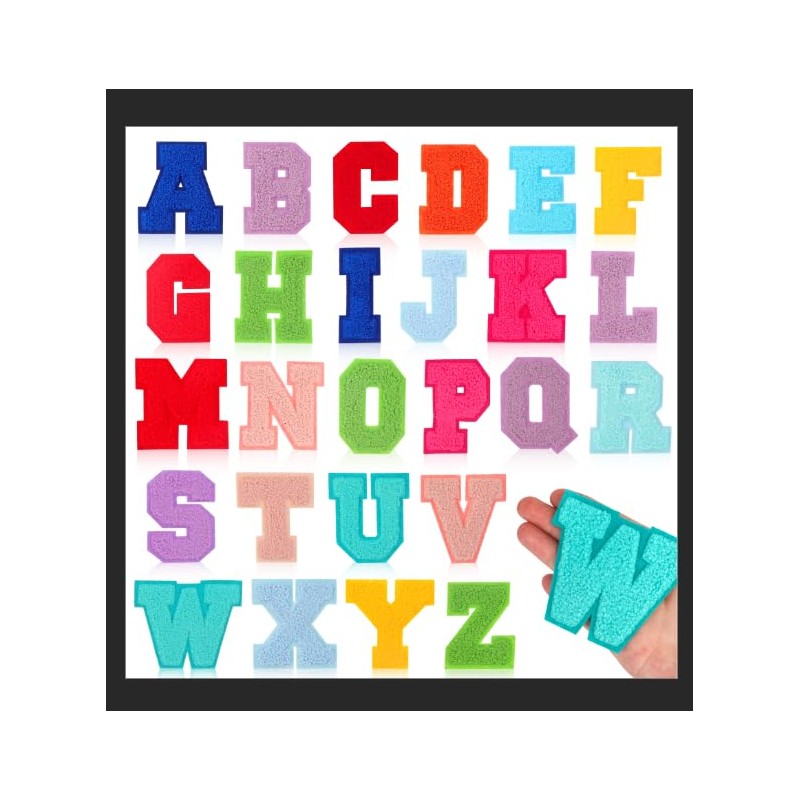 MWOOT 26PCS Chenille Iron on Letter A-Z Patches, Embroidered Applique DIY Alphabet Patches for Clothing, Skirts, Hats, Bags, Jeans
