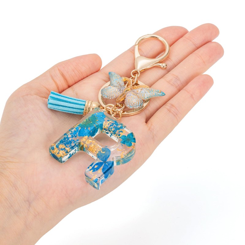 - Delicate Design: The resin letters are embedded with blue petals and gold foil. The alphabet keychain comes with a blue gradient butterfly tassel pendant to satisfy your DIY decorative needs. You can also remove it to change the location of the tassel.