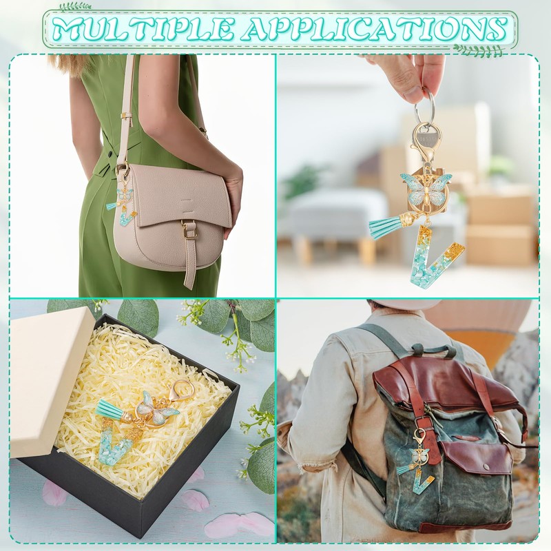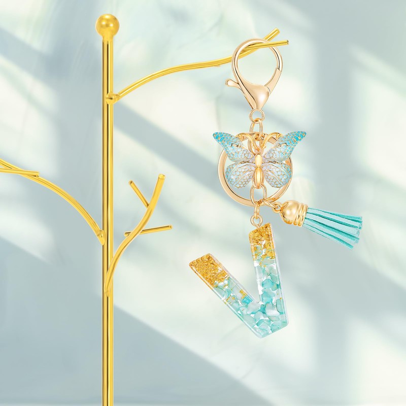 - Elegant design: resin alphabet keychain with gold foil and green gradient butterfly tassel pendant to meet your personal decoration needs. You can also remove it to change the position of the pendant.