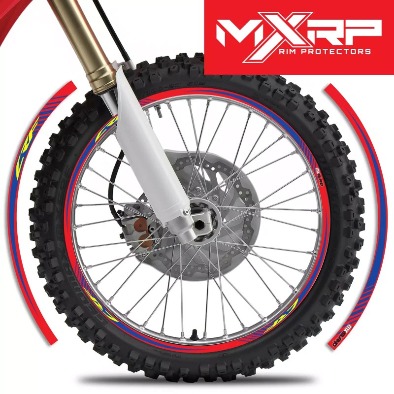 MX ISLAND Motocross FACTORY : RED / BLUE RIM PROTECTORS WHEEL GRAPHICS 19" Rear 19" Front