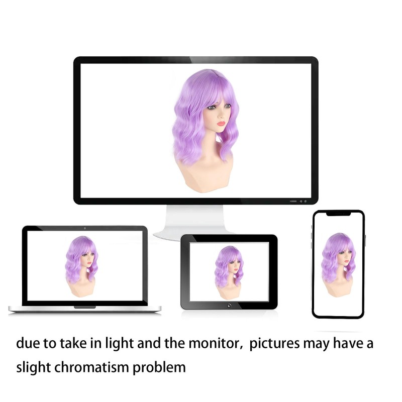 Mxayhnajxl Purple Wigs for Women,Light Purple Bob Wavy Wig with Bangs,Medium Length Synthetic Wigs for Women