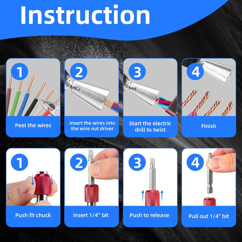 - 1/4" Wire Twister Tool for Drill: The 2025 new upgraded drill wire twister tool has been optimized to make the bottom more narrow to provide better twisting effect. It can also connect the wire cap directly, and the wiring can be completed within 5 seconds