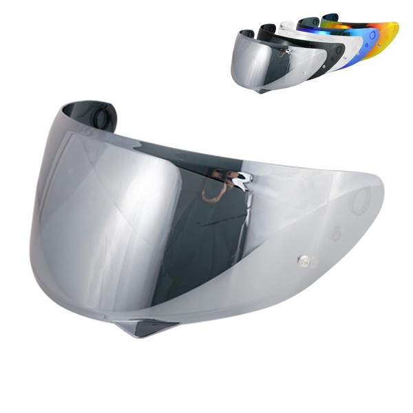 MXJ Gear HJ-34P Helmet Visor Replacement - HJ-34P Helmet Visor Motorcycle Face Shield Replacement for HJ-34P C10 (Chrome Silver)