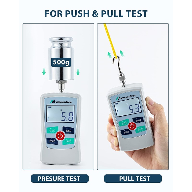 Mxmoonfree 500N Digital Force Gauge Push Pull Gauge Portable Force Meter with Units N/LB/Kg/Oz, Storage Case, Auto Backlit LCD, Auto Power-Off for Teaching School Lab Mechanical Physics (ZMF-500N)