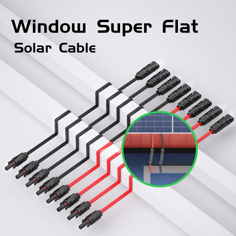 MXRPV Pack of 2 Solar Panel Flat Cable 4 mm², Solar Cable Window Feed-Through Flexible PV Flat Cable for Balcony Power Plant and Solar Power Station (50 cm - 4 Pieces)