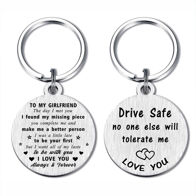 - GIRLFRIEND VALENTINES GIFTS,To my girlfriend, The day i met you, i found my missing piece. you complete me and make me a better person. i was a little late to be your first but i want all of my lasts to be with you. i love you always & forever. Other side: Drive safe no one else will tolerate me I love you