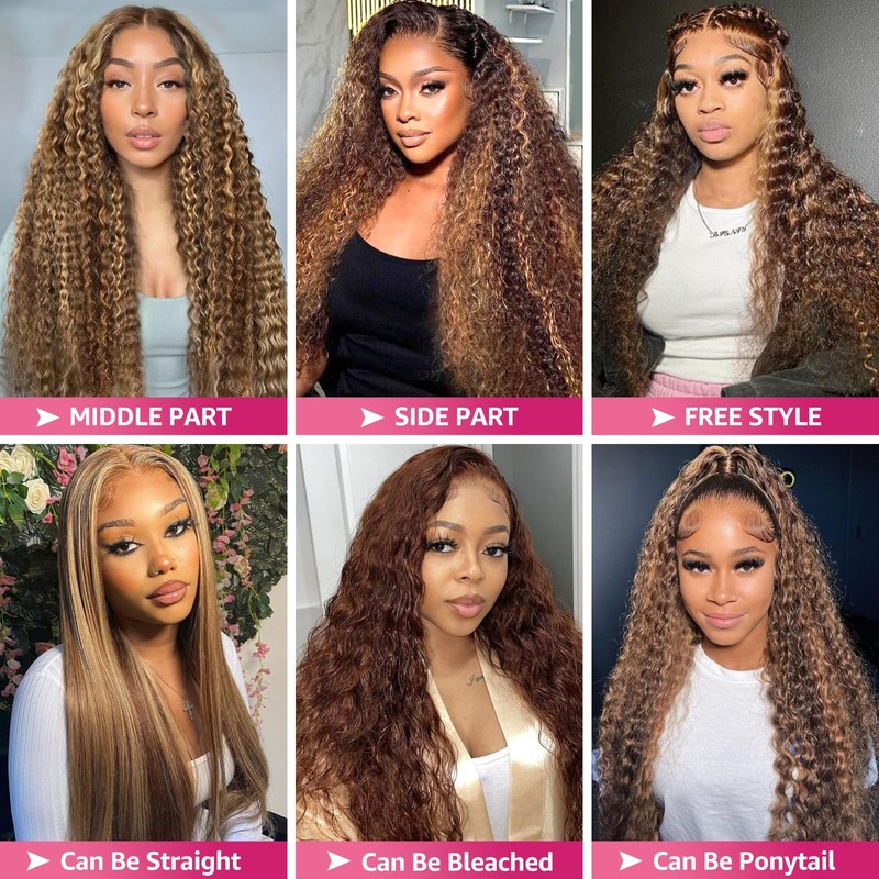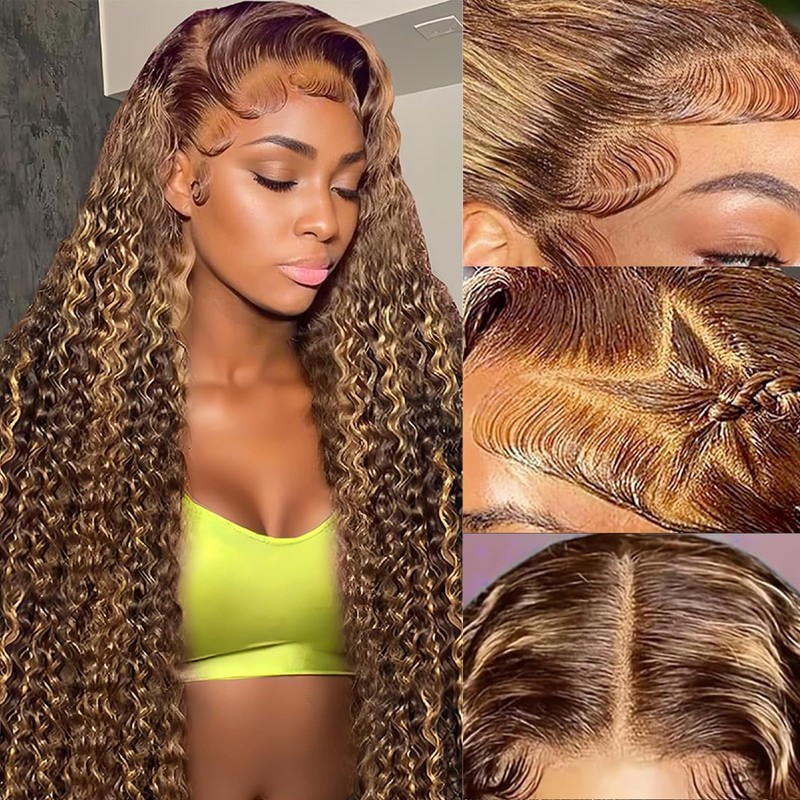 - 【Ombre Honey Blonde Human Hair Wig Material】Deep Wave Human Hair Frontal Wigs, 13x6 HD Lace Front Wigs for Women, 200% Density Curly Human Hair Wig, Full and Thick. 100% Unprocessed Brazilian Virgin Human Hair. Soft and Natural, Healthy and Vibrant, No Dry End, Zero Split Ends, Comfortable Against Skin