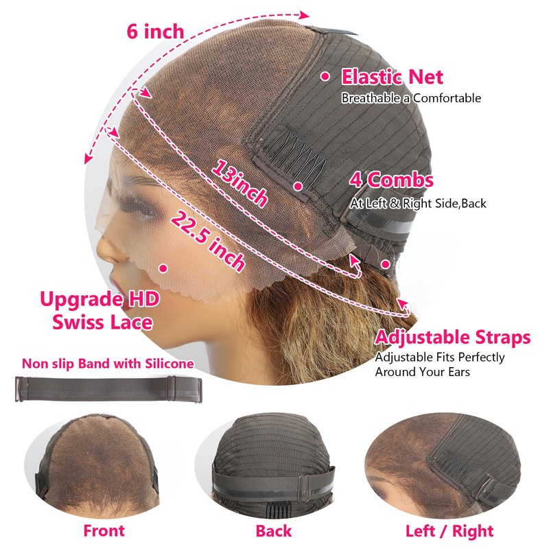 - 【13x6 Lace Front Wigs Cap Process】This Deep Wave Wig has 3D Dome Cap, Medium Cap Size (21.5 - 22.5 Inch) with Adjustable Straps and 4 Combs, and an Upgraded Silicone Anti-slip Strap, More comfortable. Human Hair 13x6 Lace Front Wigs, Large Area Lace wigs, Wear Comfortable, Easy to Install, Durable and Easy to Adjust, Fit Most Customers Head Perfectly