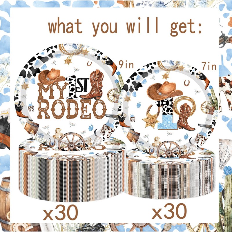 My 1st Rodeo Western Cowboys Birthday Paper Plates My First Rodeo Birthday Party Supplies Cowboys 1st Rodeo Bday My First Rodeo Baby Shower Decor serve 30 guests