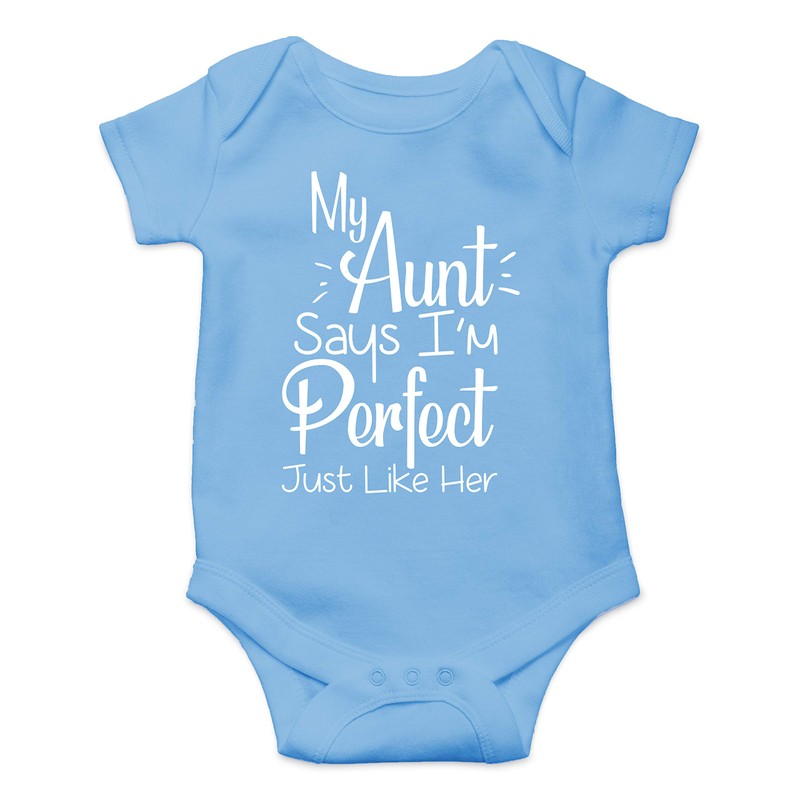 My Aunt Says I'm Perfect Just Like Her - Funny Baby Essentials Bodysuit - Newborn Girl Clothes (Newborn, Light Blue)