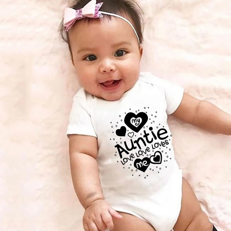 My Auntie Loves Me Letters Printed Infant Baby Clothes Unisex Funny Newborn Baby Romper Bodysuits Summer Short Sleeve (White, 12-18months)