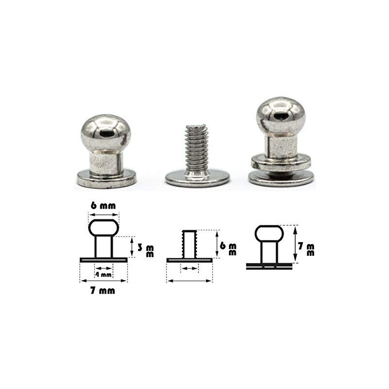 My Belt 4 Piece Head Rivets with Screw Cap 6 mm / Mushroom Head Rivets Silver...