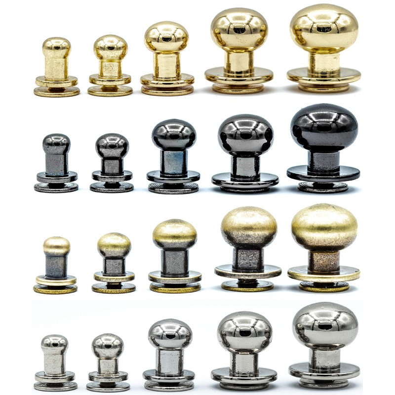Button screws are ideal as a closure on e.g. purses, belts or bags. The rivet consists of two parts, which are easily screwed into each other.