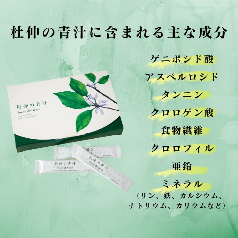 - Ingredients: Geniposide acid, asperlocide, tannin, chlorogenic acid, dietary fiber, chlorophyl, zinc, mineral, etc