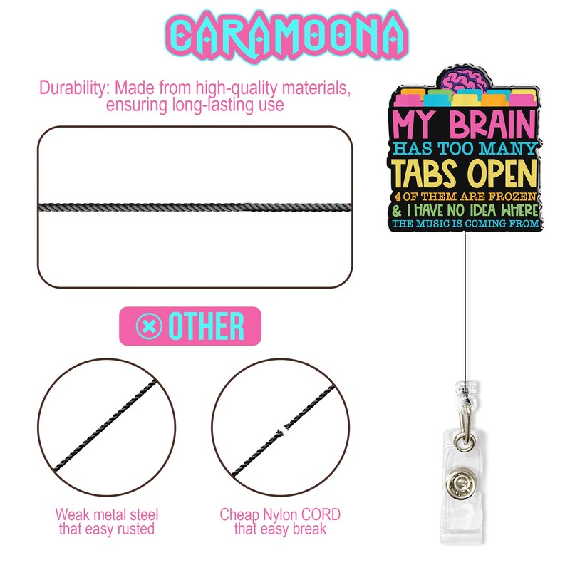 My Brain Has Too Many Tabs Open Badge Reel 1.6 Inches Funny ADHD Mental Health Brain Humor, ID Card Holders, Retractable Alligator/Belt Clip, Acrylic Material, Badge Accessories DIY for Nurse Teacher