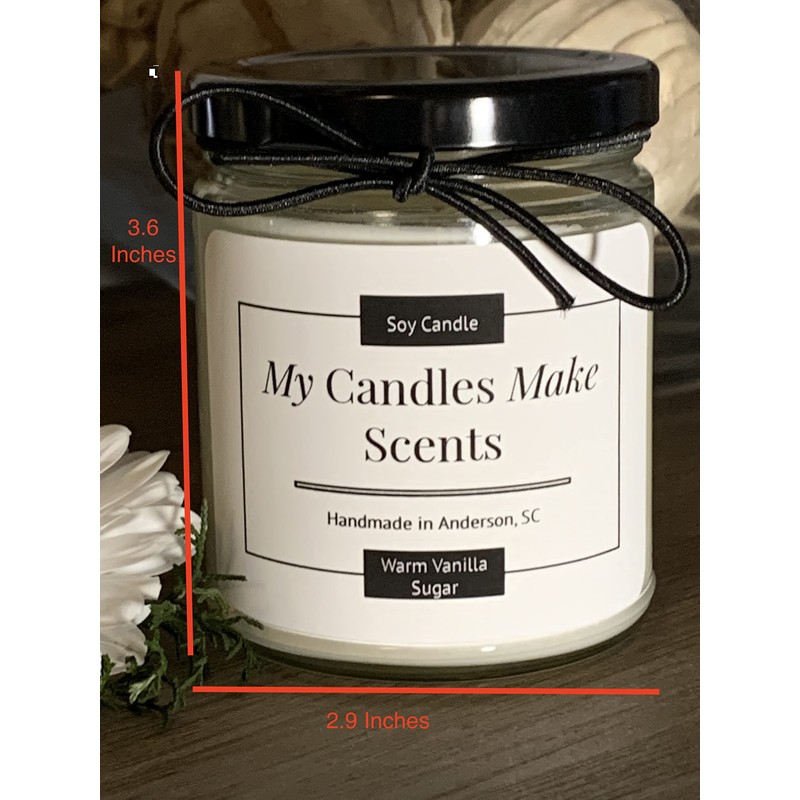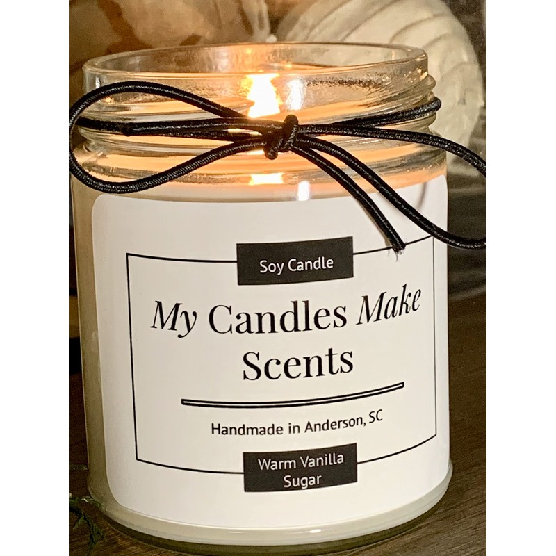 My Candles Make Scents| Personalized Handcrafted Soy Candle | 9oz Stylish Clear Jars | Many Scents To Chose From (Warm Vanilla Sugar)