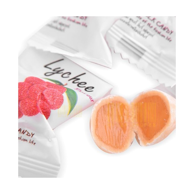 • ✅Strawberry candy with a soft texture. Sticky, unique Provides a mellow taste of fresh Lychee Perfectly blended with the aroma of Lychee