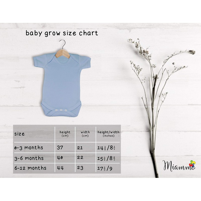 - Available in 3 sizes of babygrows as well as on our other products: rompersuit/sleepsuit, bibs and kids shirts