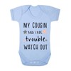 My cousin and I are trouble watch out (stars style) family statement [BBY7] baby grow vest, 0-3 months, Pastel Blue