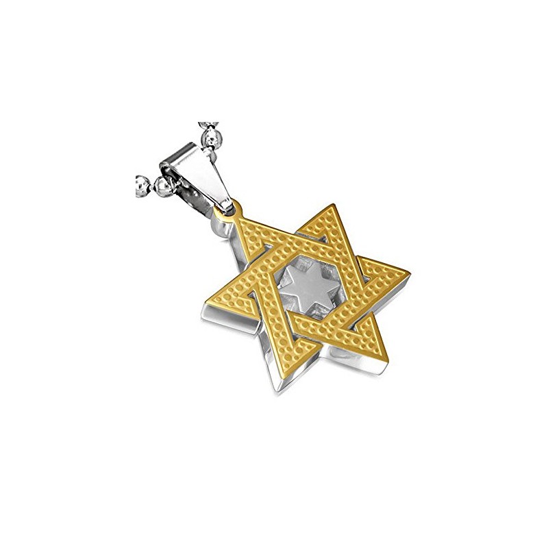 My Daily Styles Stainless Steel Two-Tone Jewish Star of David Charm Pendant Necklace with Chain, 24"